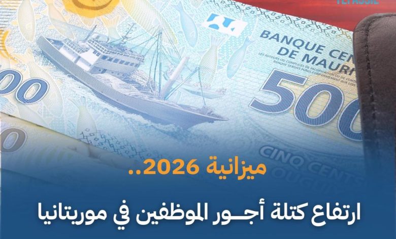 أظهرت معطيات الميزانية العامة للدولة لسنة 2026 ارتفاع كتلة أجور الموظفين إلى 315 مليار أوقية، مقابل 256 مليار أوقية في ميزانية سنة 2024، أي بزيادة تناهز 59 مليار أوقية خلال عامين.