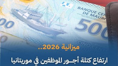 أظهرت معطيات الميزانية العامة للدولة لسنة 2026 ارتفاع كتلة أجور الموظفين إلى 315 مليار أوقية، مقابل 256 مليار أوقية في…